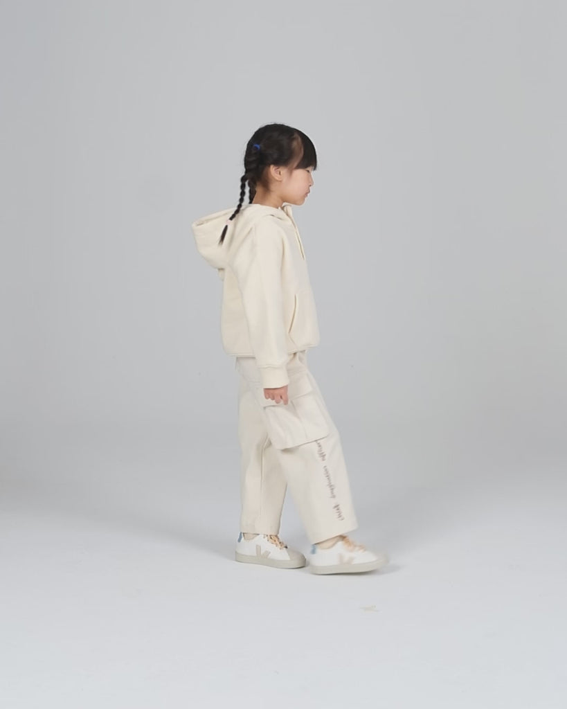 Hareket özgürlüğü için tasarlandı. Bu kargo pantolonlar, %97 organik pamuk ve %3 elastan karışımıyla yapılandırılmış ama konforlu bir yapı sunar; dayanıklılığı, rahatlıktan ödün vermeden sağlar. Fonksiyonellik odaklı tasarımıyla ön, yan ve arka cepler içerir; çocukların özgürce hareket etmesini sağlayan ergonomik bir kalıba sahiptir. Bacak kısmında Chief Imagination Officer logosu, bel altında marka arması ve arka cepte nakış işlemeli illüstrasyonla detaylandırılmıştır. Formla fonksiyonun kusursuz uyumu.